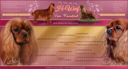 Wir möchten uns, an dieser Stelle bei Maria Grüter aus der Schweiz “Cavalier-King-Charles-Spaniel of Snowdrift” für ihr Vertrauen in uns, ganz herzlichst bedanken!